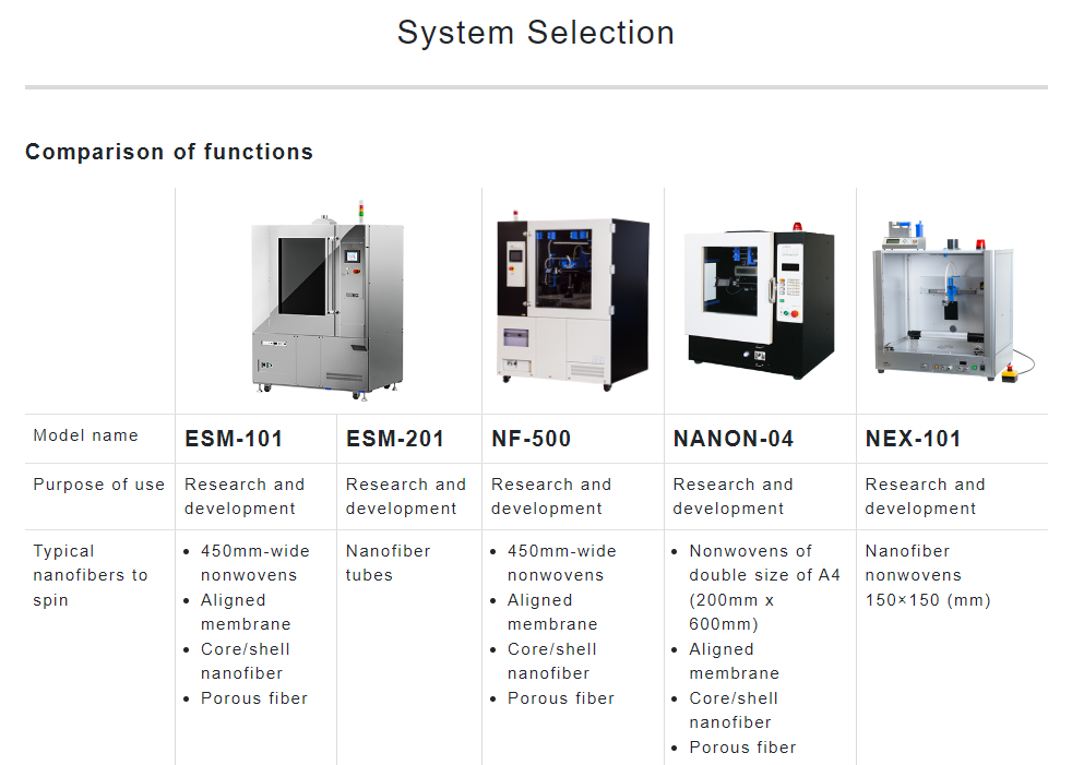A variety of materials can be spun by programming spinning conditions and combining system parts such as spinnerets and collectors.